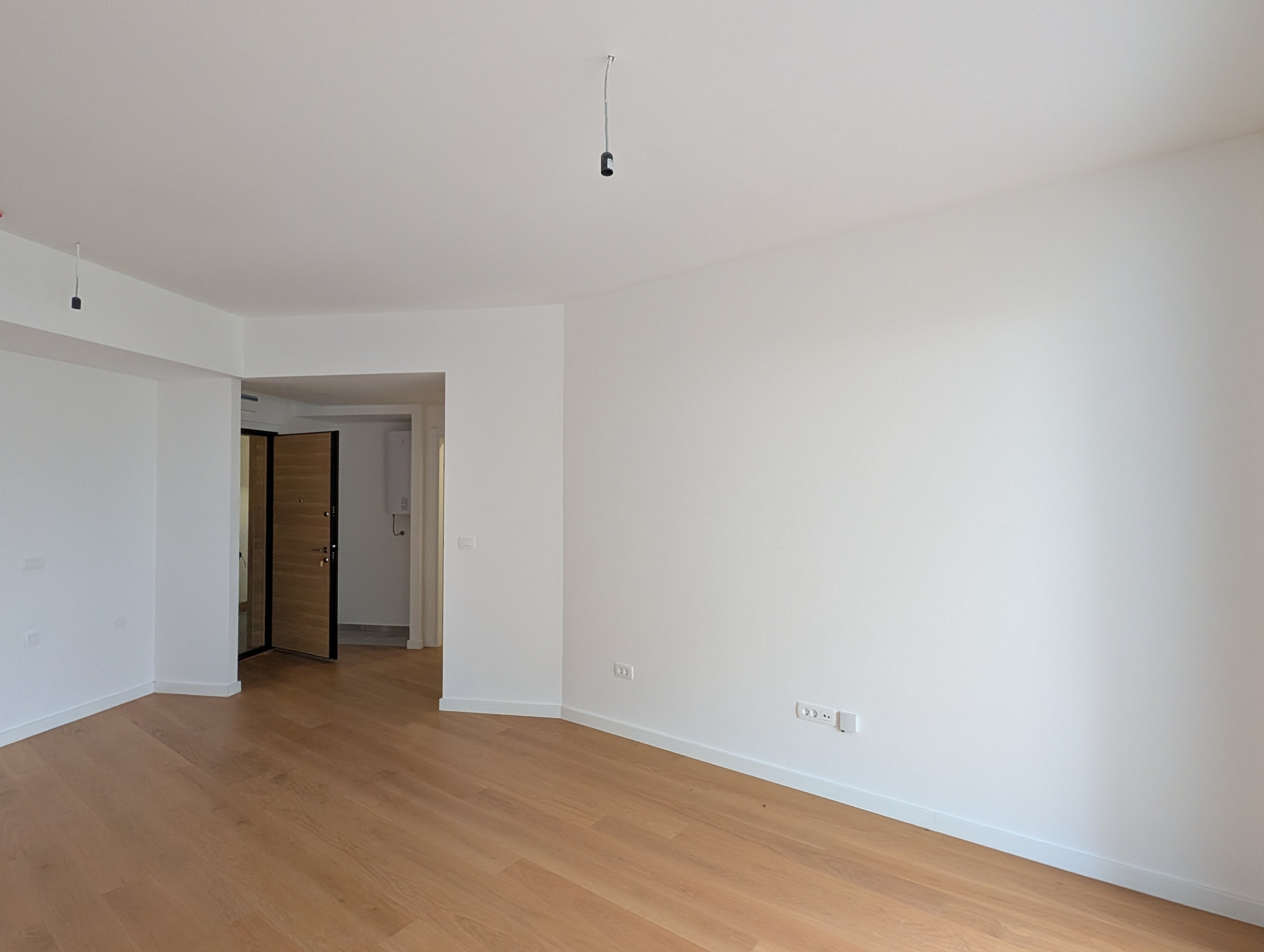 - Светлая гостиная, объединенная с обеденной зоной и кухонной нишей (1.5 м²)