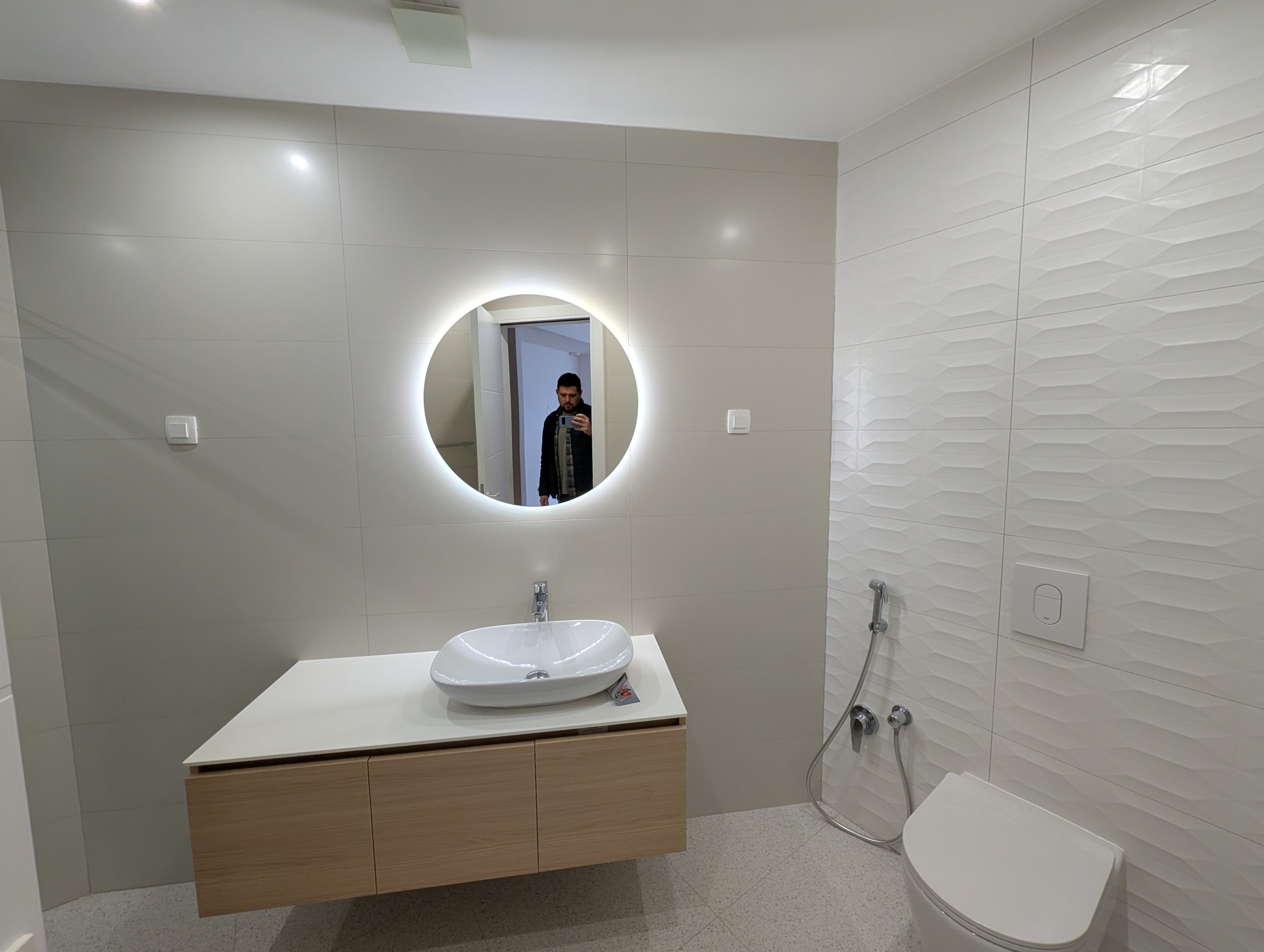 - Современная ванная комната с душевой кабиной и качественной сантехникой